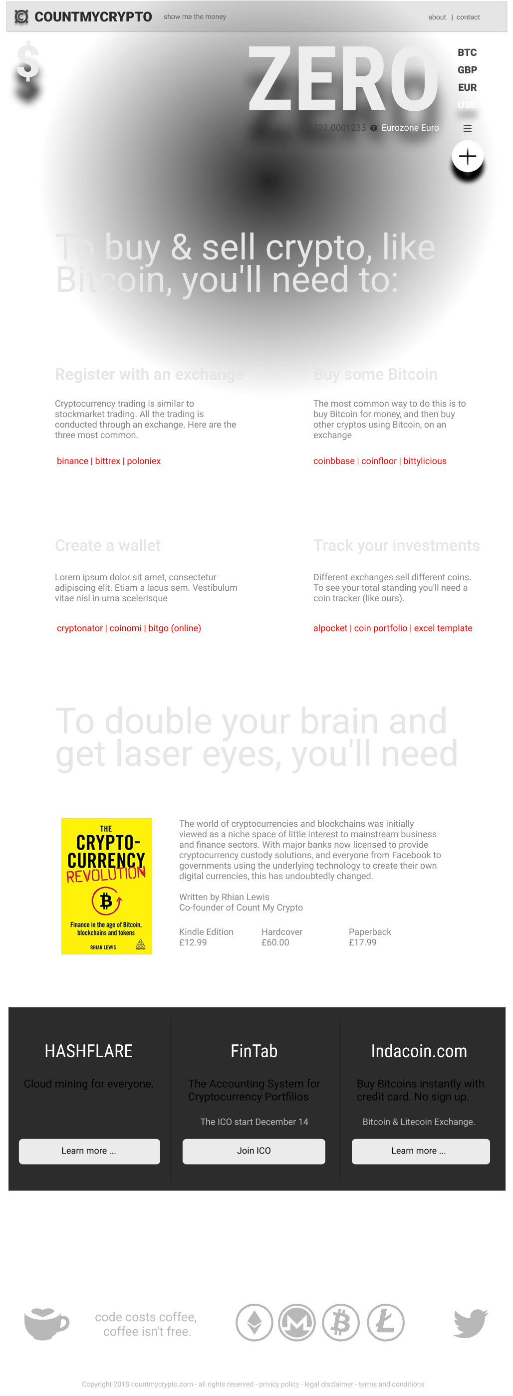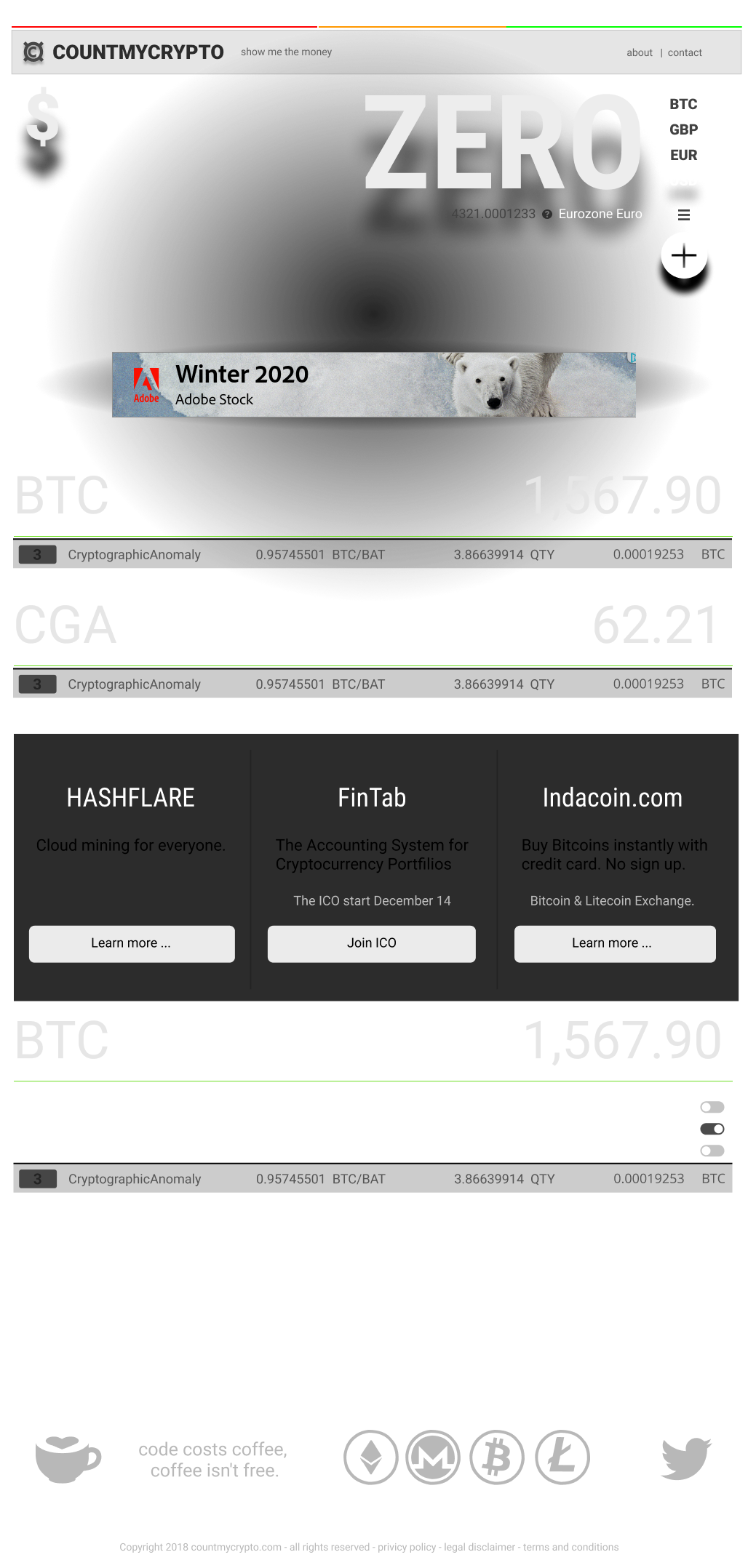 Returning user with two crypto currencies, showing paid advertising banners